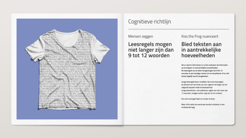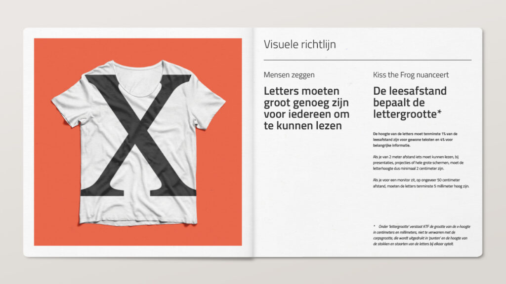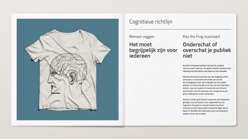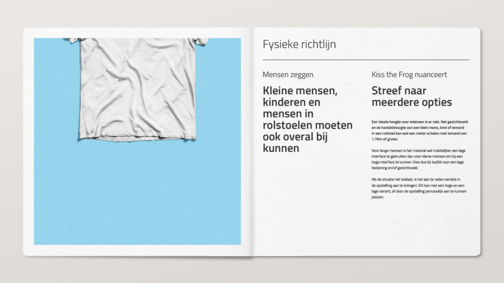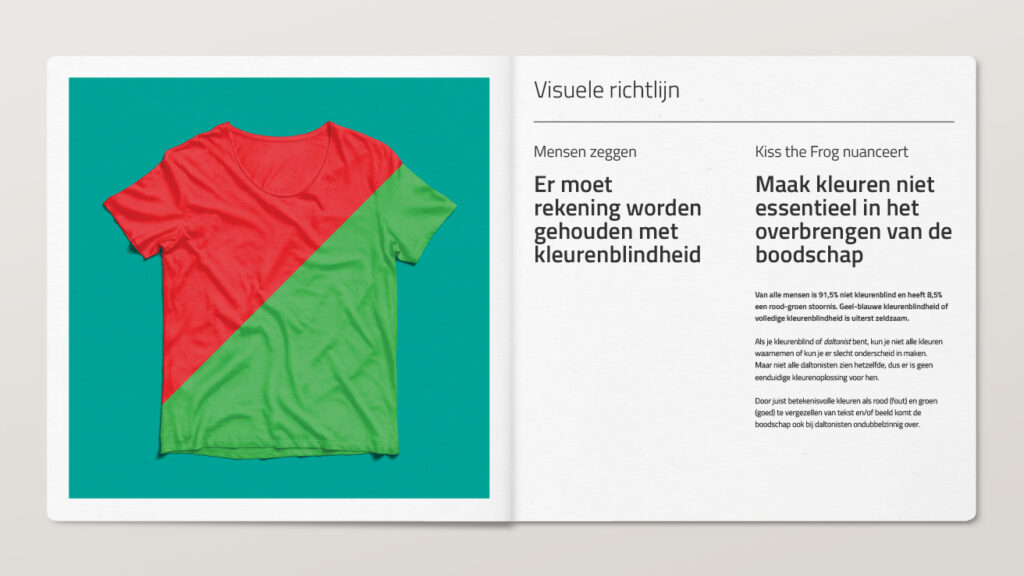 Toen inclusive design een ‘ding’ werd in ontwerpersland, merkten we bij Kiss the Frog dat de meningen over de regels van goede leesbaarheid, begrijpelijkheid en ergonomie nogal uiteen konden lopen. Dit zorgde voor veel discussie, zowel intern als met klanten.